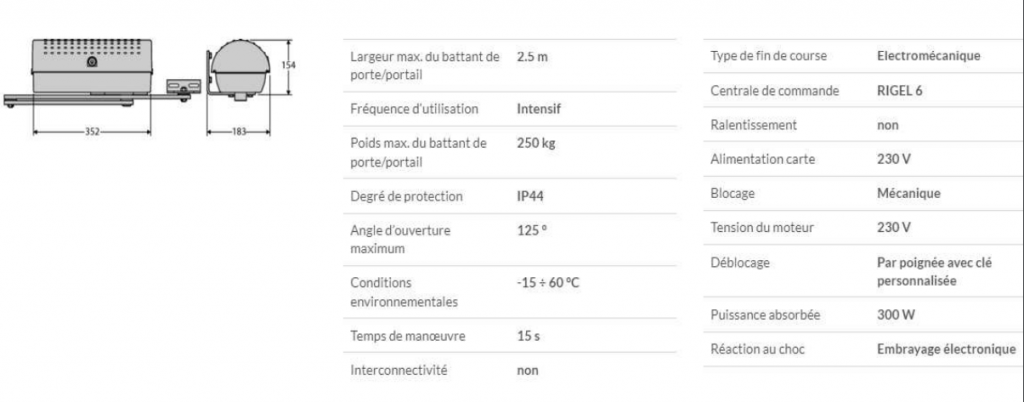 actionneurs de 230 V/300 W destinés à motoriser à la fois des portails