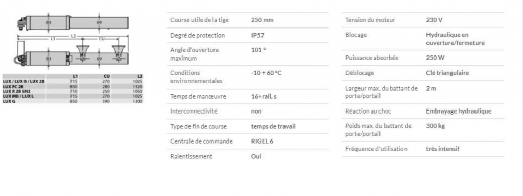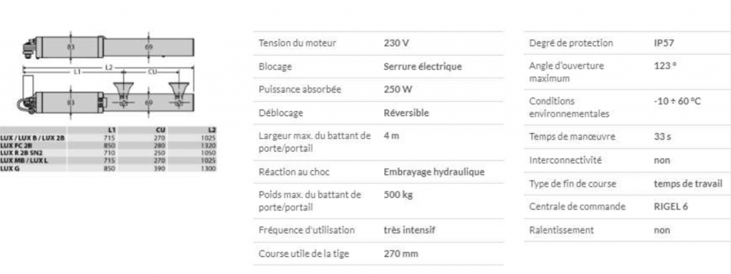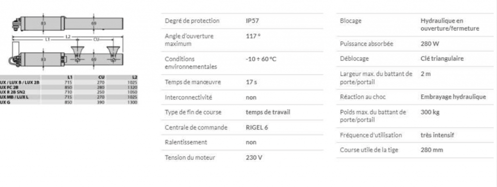 Pour assurer la sécurité de votre installation, ce système est équipé d’un système de verrouillage bloquant utilisant l’hydraulique à la fois en ouverture et en fermeture.